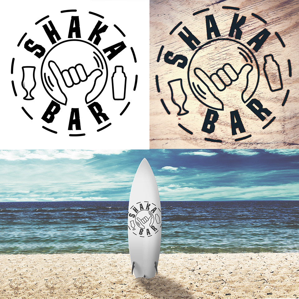 Logo Design work for a cocktail bar called Shaka Bar. The shaka sign, sometimes known as "hang loose" by outsiders also used to say awesome, is a gesture of friendly intent often associated with Hawaii, and surf culture. Really Enjoyed working on this.